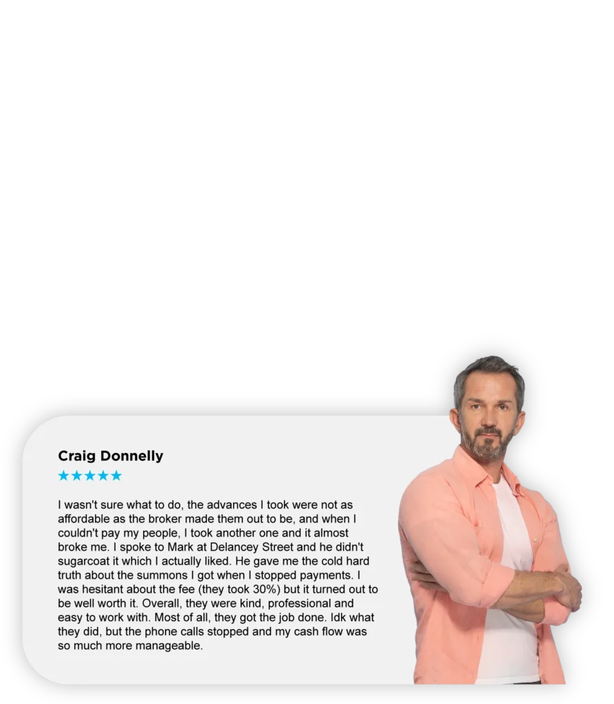 We were referred to Delancey by Google, we found them to be super helpful and informative. They helped us restructure 5 different merchant cash advances into a monthly payment.